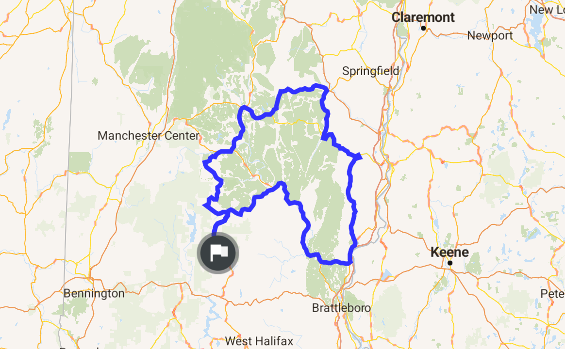 Great ride, lots of turns and a covered bridge to go through. Eat at http://maclaomainns.com/ 52 S Main St, Chester, VT 05143 a great place. Then continue.