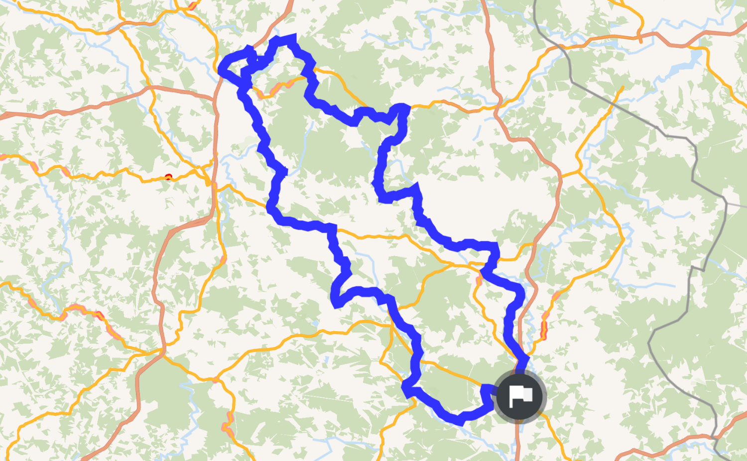 Great 3h10m, 200 km ride. Fast, curvy, lots of differnce, many sights. Enough places to stop for refreshments.