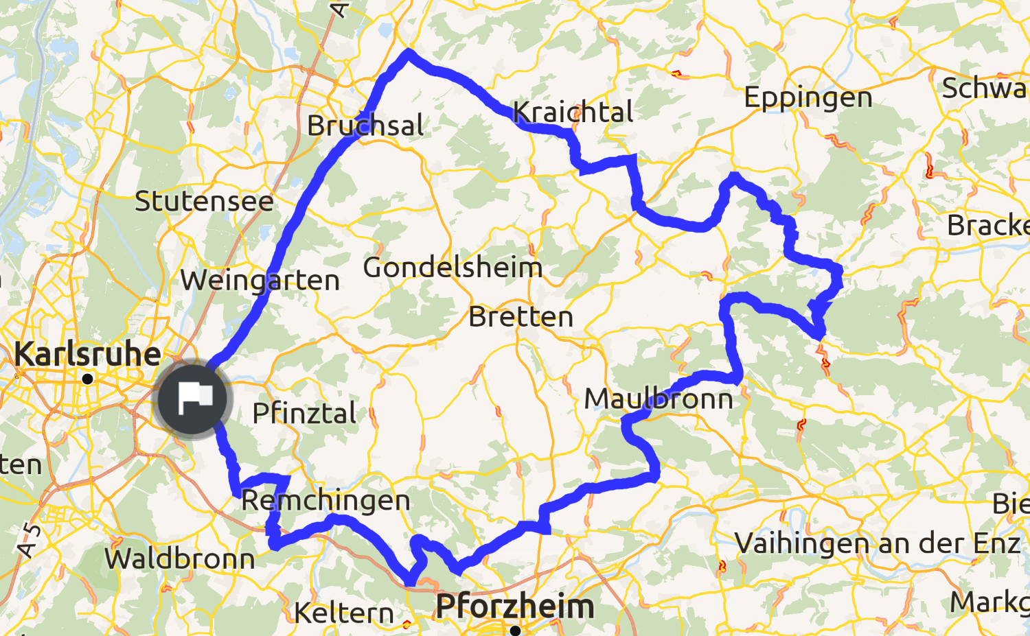 Abwechslungsreich in Bezug auf Landschaft und Streckenführung. "Tiefer See" in Maulbronn und Schloss Bruchsal laden zu Pausen ein.