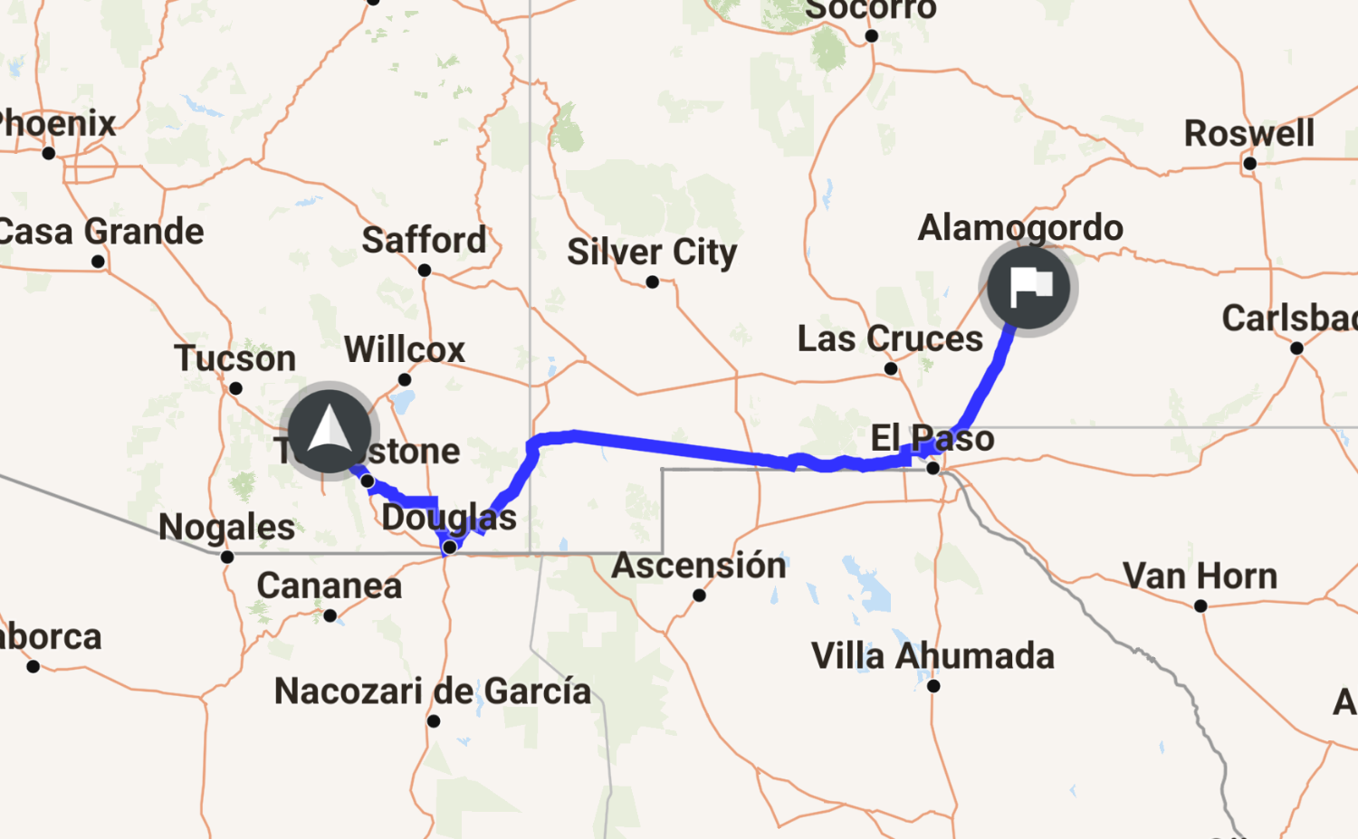 W/Sarah Brad and Jason Stops in tombstone, border xing, el paso. Ended at camp ground in Oliver Lee, just above White Sands NP