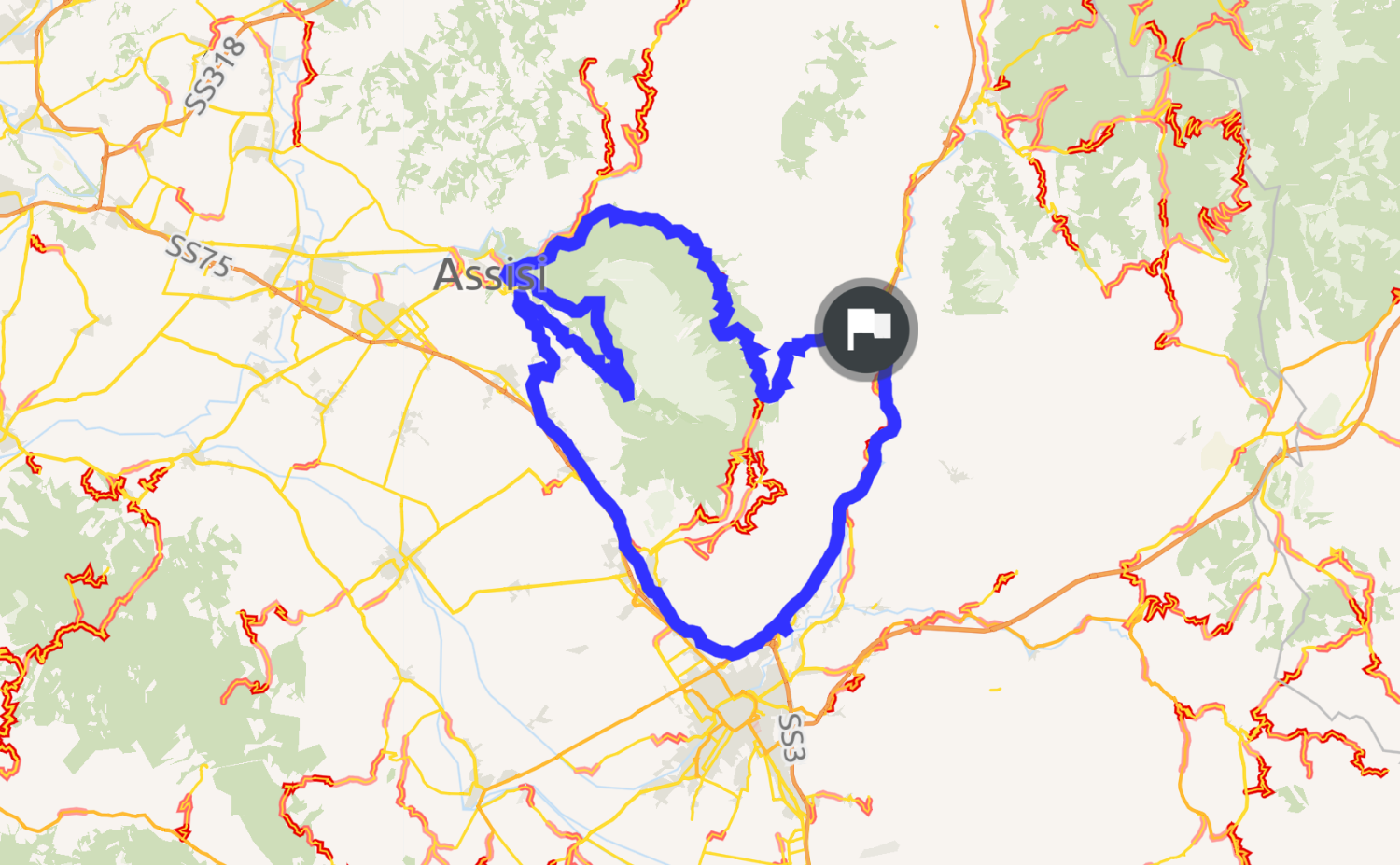 Strada tortuosa, per gli amanti del misto strettissimo, paesaggi bellissimi intorno al Subasio, attraversamento di Assisi.