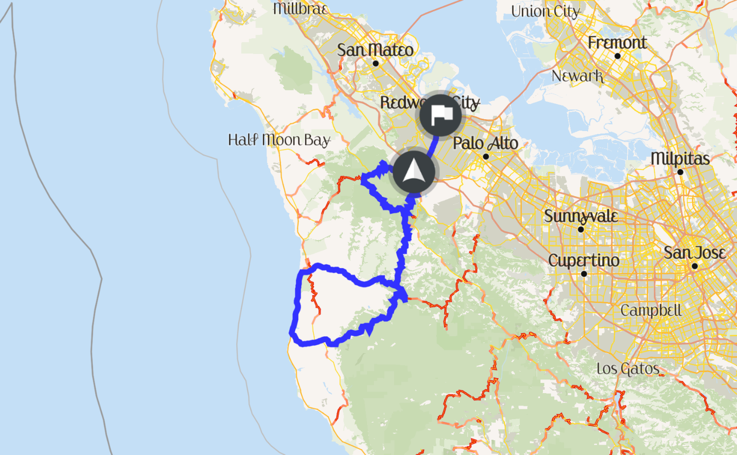 Less people on the road today than I usually see on these roads, making for some smooth uninterrupted high speed carving. Really got in the zone today. Could barely feel my legs by the end of the ride. All in all, great solo mission.