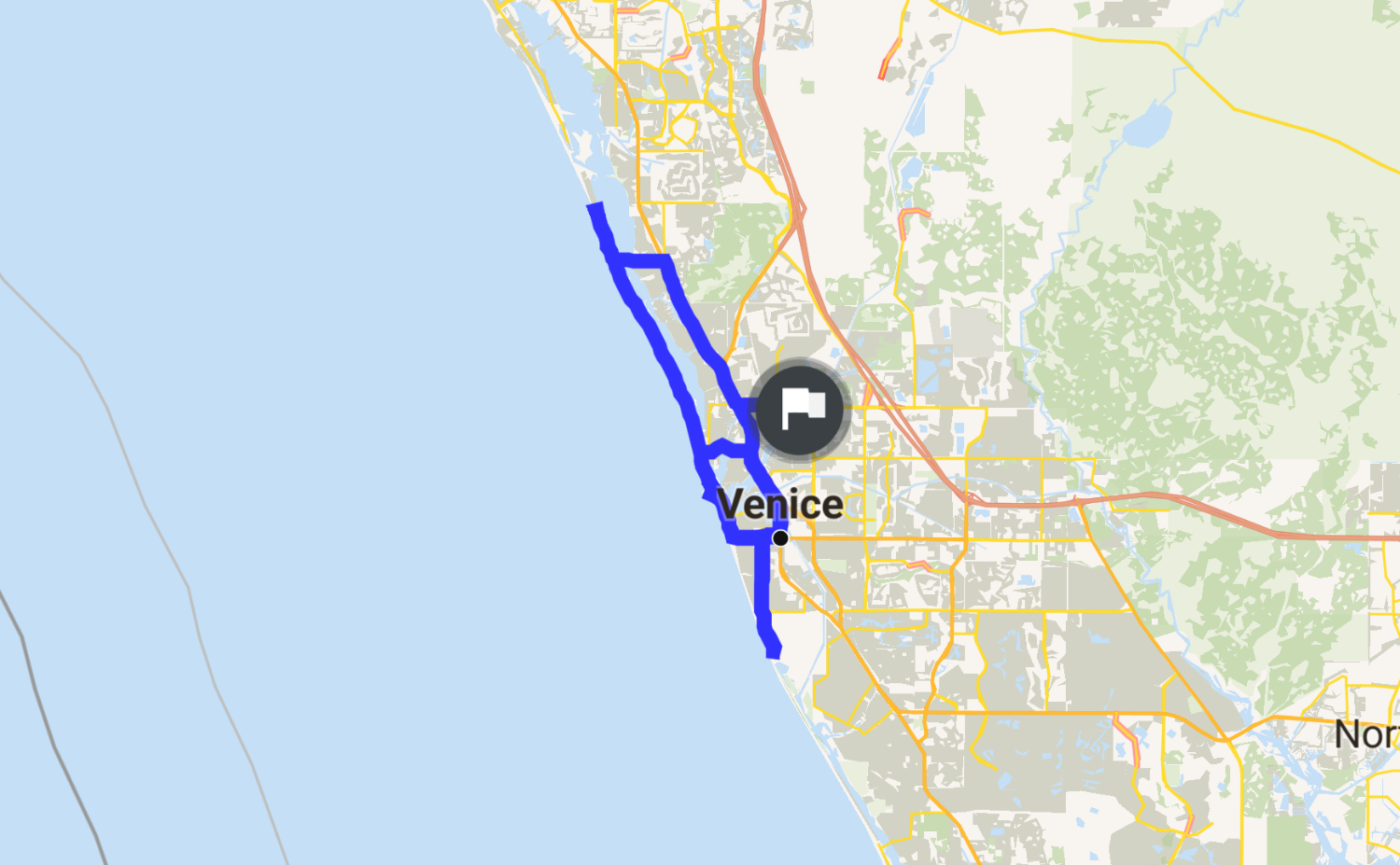 If you go up on North Casey's Key Road, it's a dead end but had a beautiful spot to take pic but lots of sand (I do 10mph to keep control) and you gotta 3 it turn towards the end. Casey's Key Road South had some puddles, but North Jetty was good, but it's gravel (10 mph thing). Then, down to South Jetty and Capersen Beach, which is still closed.