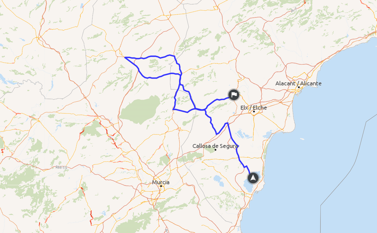 Zur Weinprobe Casa Ermita, Futtern in Pinos und Ende an der "Rennstrecke " bei Crevice te, da War die Hölle los