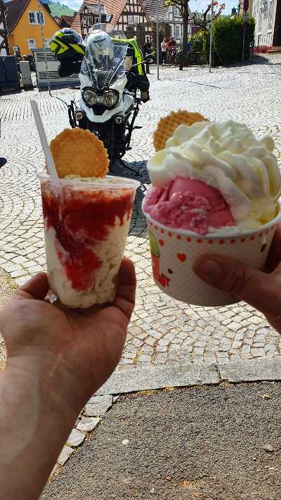 Gemütlich Sonntagstour, lecker Eis in Biedenkopf, Sackpfeife war wegen Unfall gesperrt