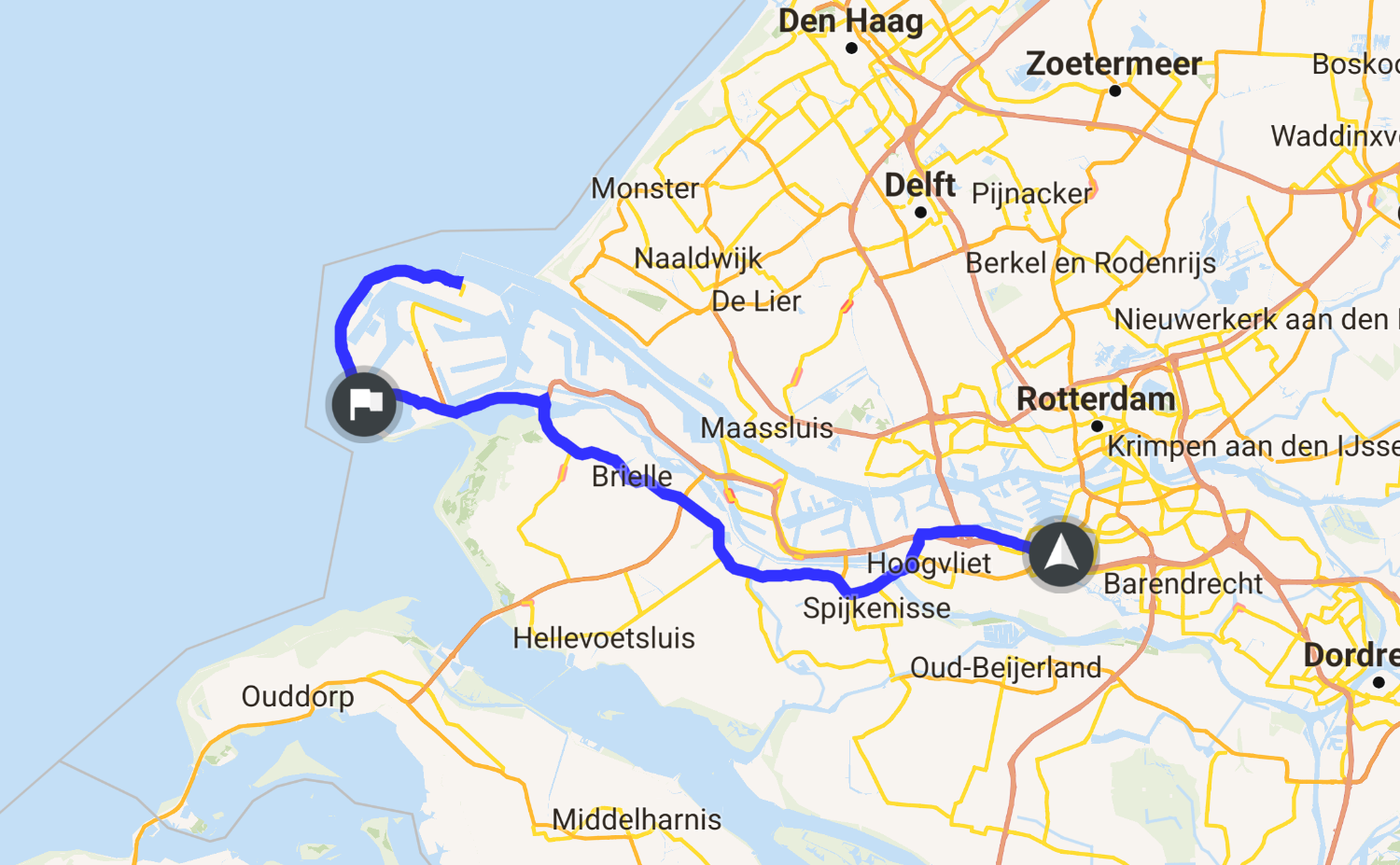 Ontspannen touren op een hele brede, goed geasfalteerde parallelweg langs de provinciale weg op de Maasvlakte. Je mag er 80, in de praktijk zal niet iedereen zich daar aan kunnen houden ;-) Onderweg kom je langs een kleine parkeerplaats langs het strand, dus je kunt er even stoppen voor een korte pauze of om daadwerkelijk het strand op te banjeren. Mooie plek (vooral op zonnige dagen) met duinen, veel windmolens, wisselingen in hoogte, en hier en daar een bochtje.