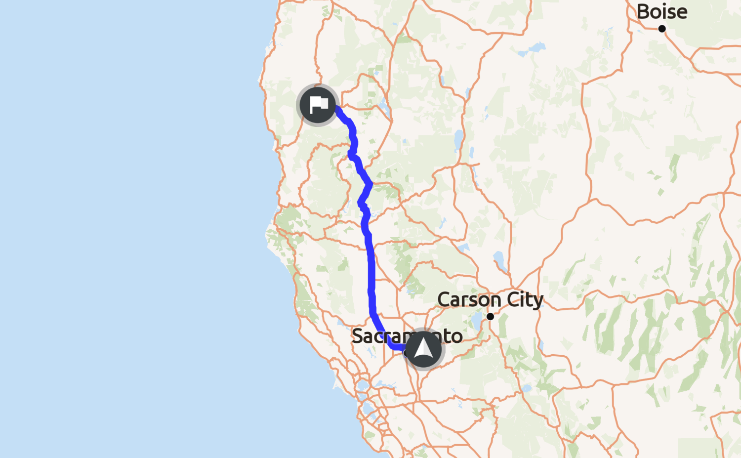 Tracking glitched in Grant's Pass, OR. Reached Eugene, OR then turned around... Total of 1022 miles in 19 hours and 26 minutes