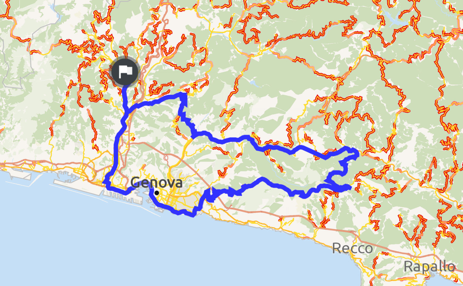 Percorso che prevede un primo tratto cittadino ma poi su strade poco frequentate. Il manto stradale non è perfetto come in tutta l'area genovese...e anche ligure.