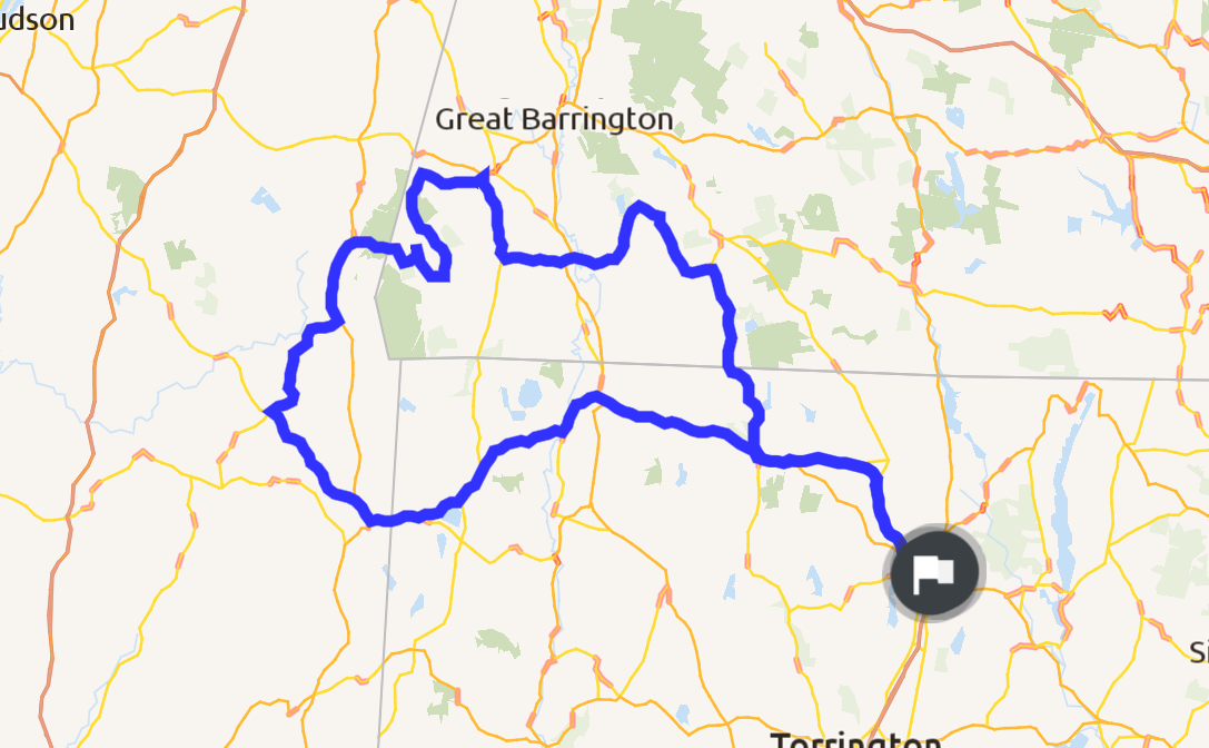Cool ride, went through Mass and New York. Lots of wide sweeps of farm land and a lot of backroads. Nice to get out on this 70 degree Sunday at the end of August.