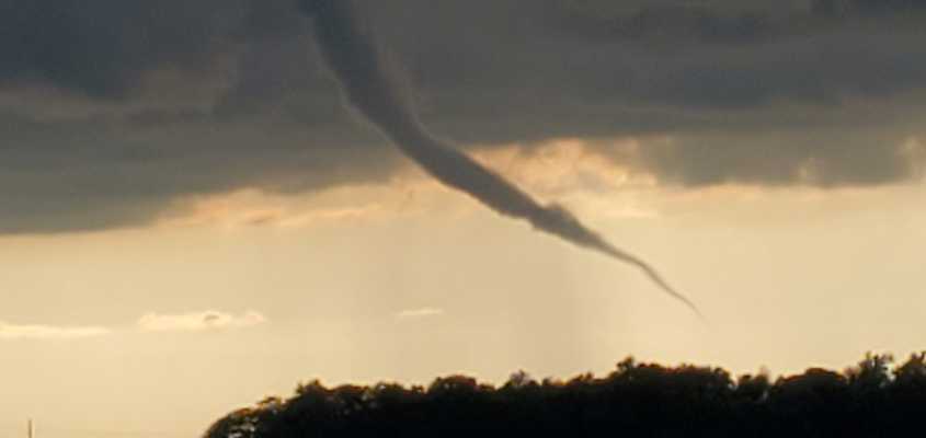 I was out riding with my friend McKenna, we seen this little funnel cloud start to form so we headed in its direction to check it out. Eventually it formed into a small tornado that never touched the ground. This was near Warren Indiana.