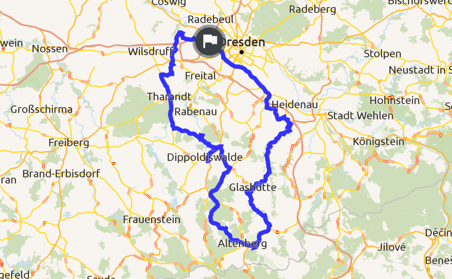 Schön kurvig mit vielen interessanten kleinen Orten. Im Müglitztal herrscht leider recht viel Verkehr.