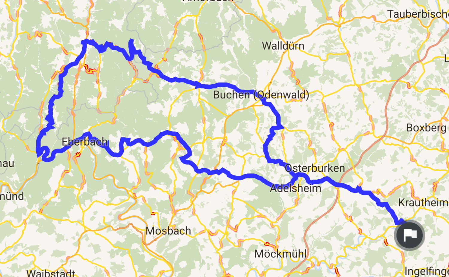 Schöne Tour, durch den Odenwald. Leider sind manche Straßen an Sa-, So- un Feiertagen gesperrt. Perfekt für unter der Woche.
