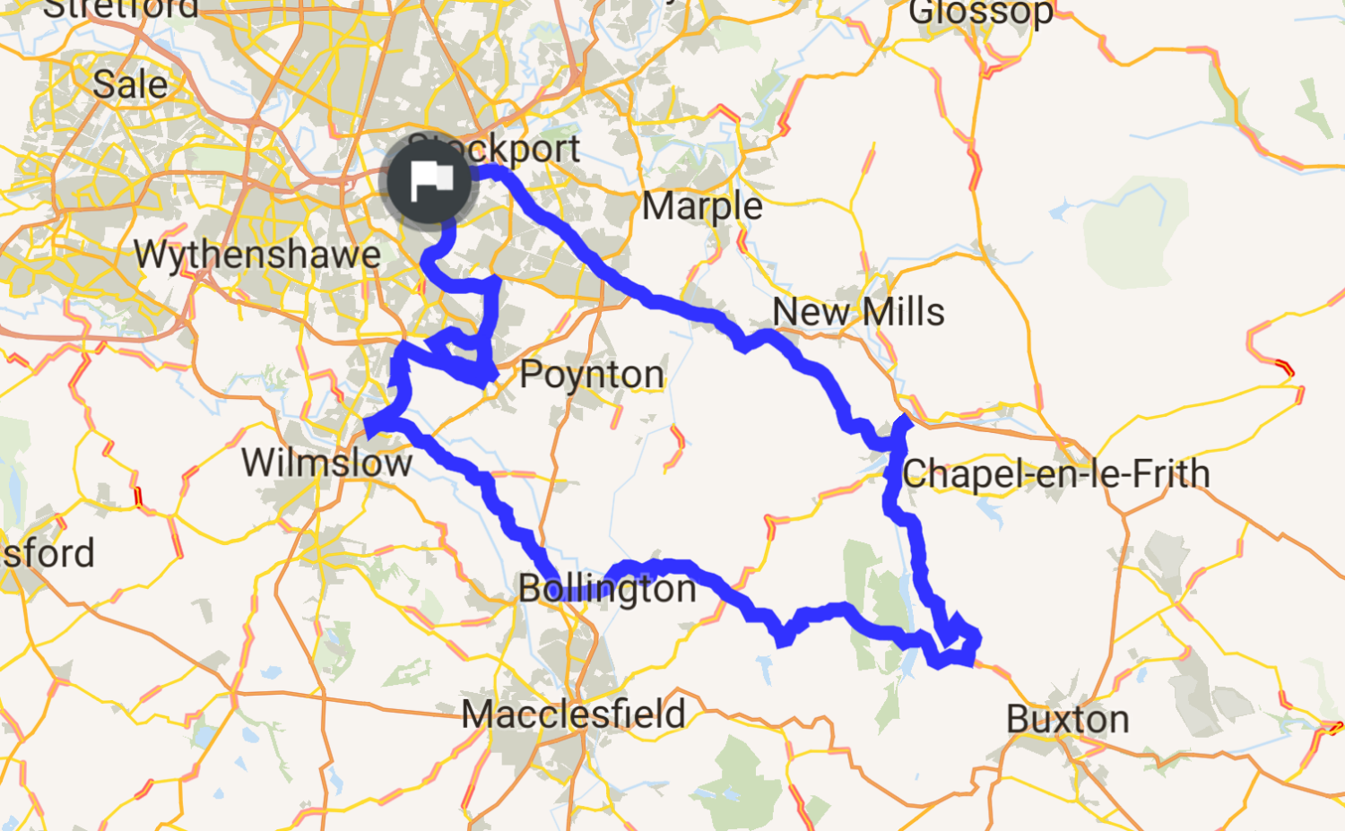 Dawn ride near Goyt valley, with some nice views on a Summer dawn. Some very small roads between Bollington and Whaley Bridge, occasional poor road conditions.